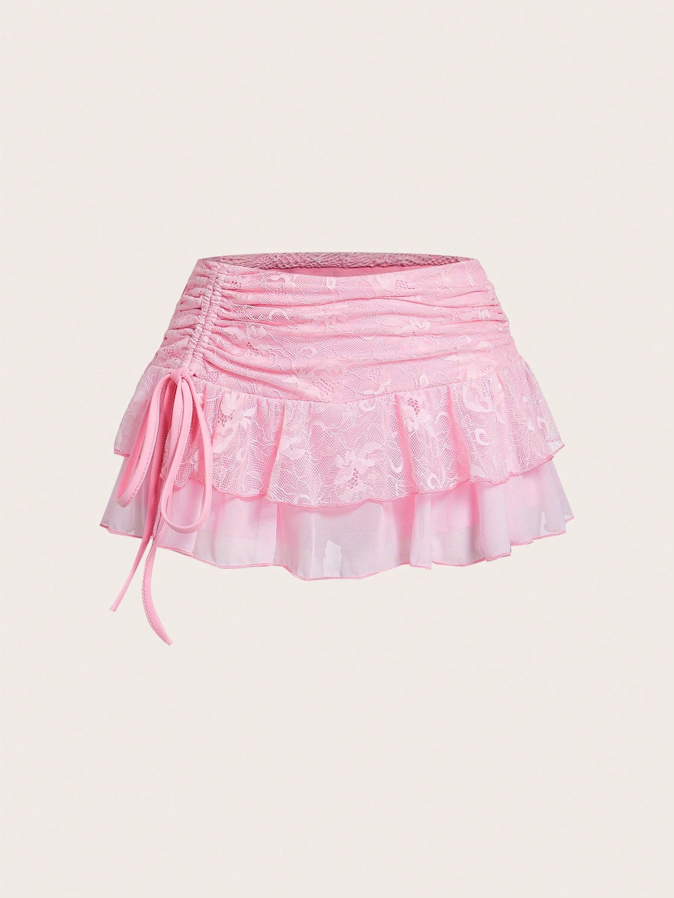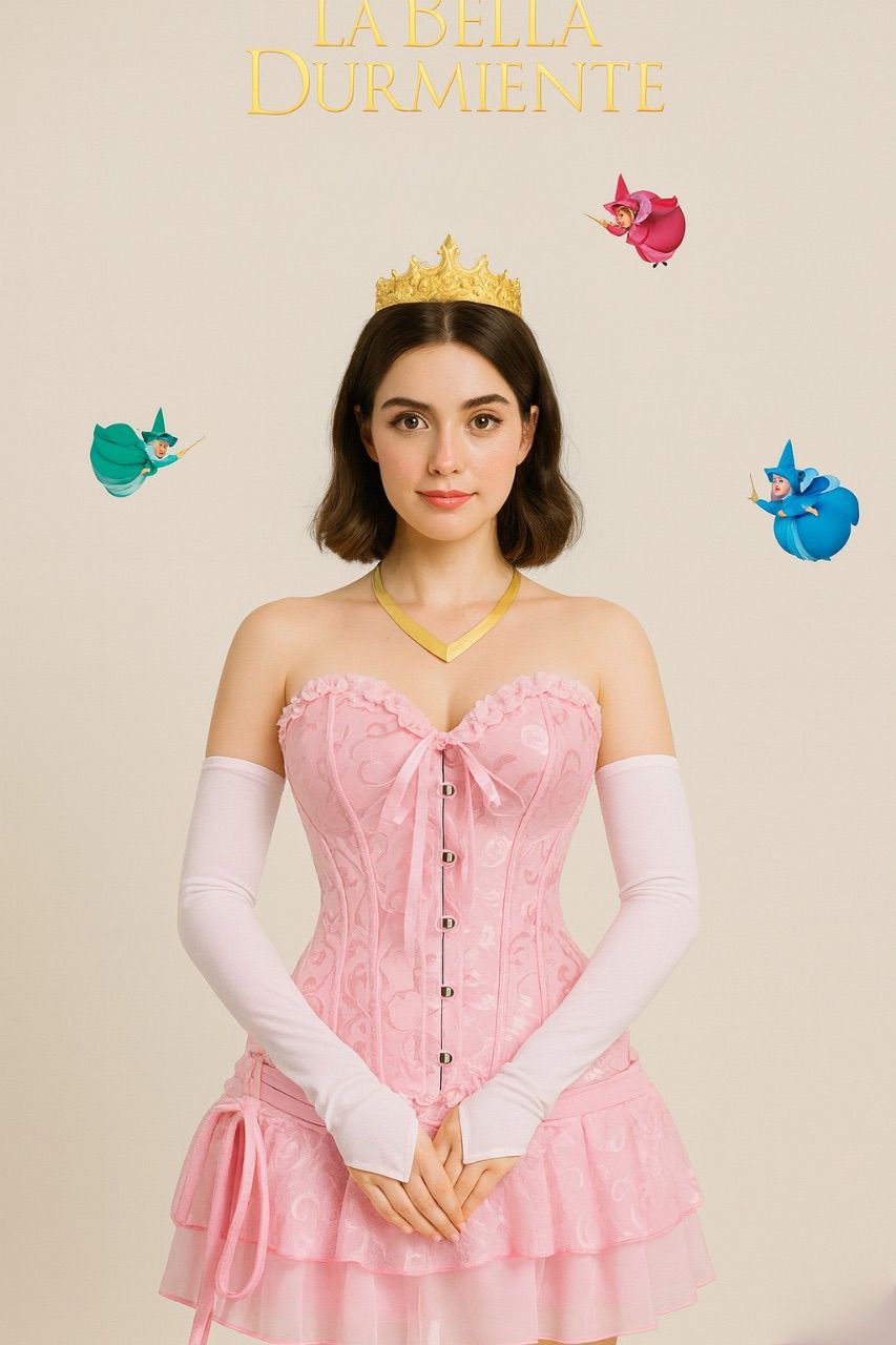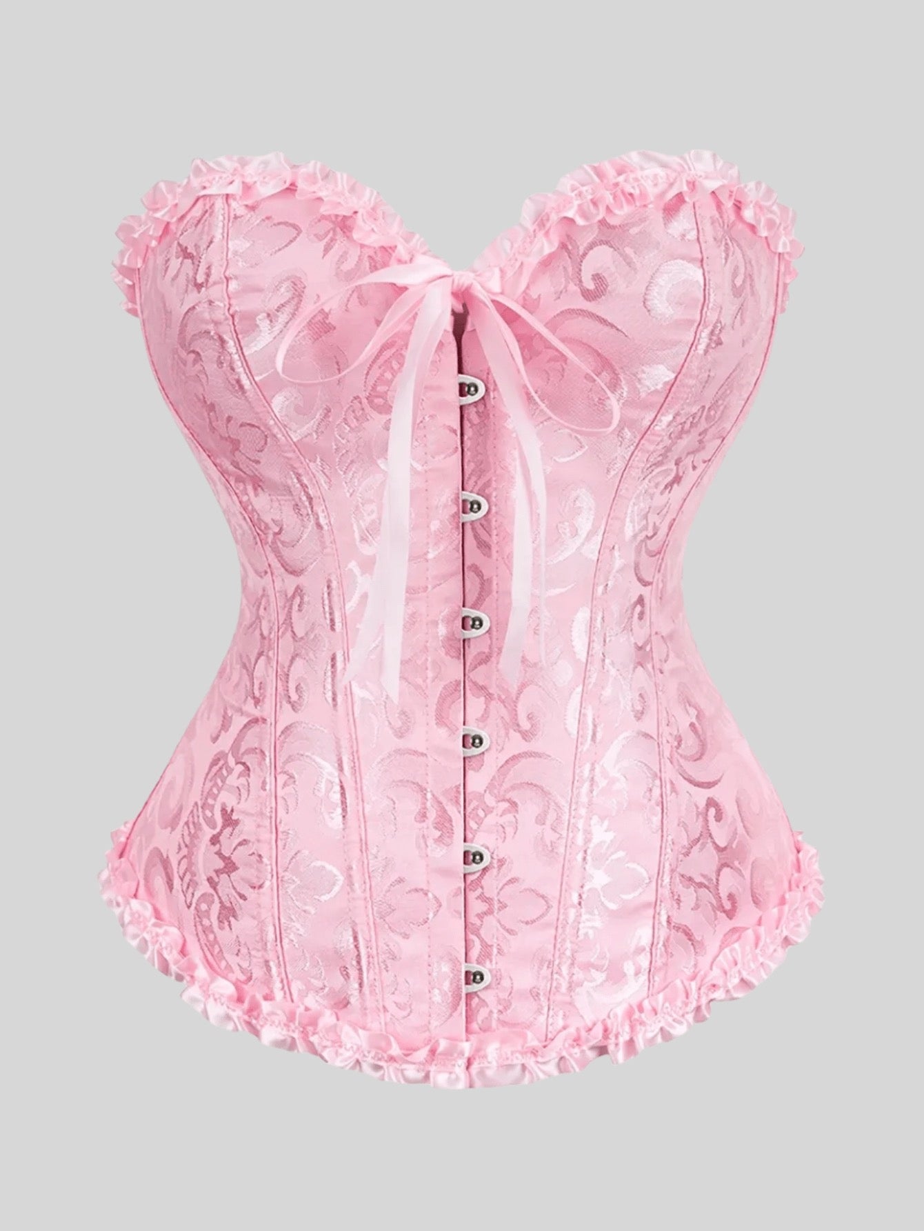 👗 Corsé rosa con detalles bordados y lazo decorativo.